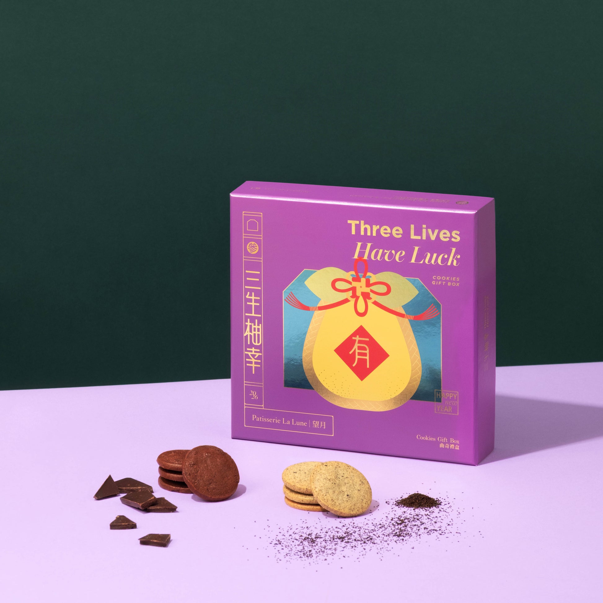 禮盒上的柚子代表三生「柚」幸,寄寓福氣即將到來,為新一年帶來好氣象。禮盒內包含伯爵曲奇(9件)及朱古力曲奇(9件)兩款口味,適合配搭任何風味的茶品,拜年時與親友一同享用,份外美味。